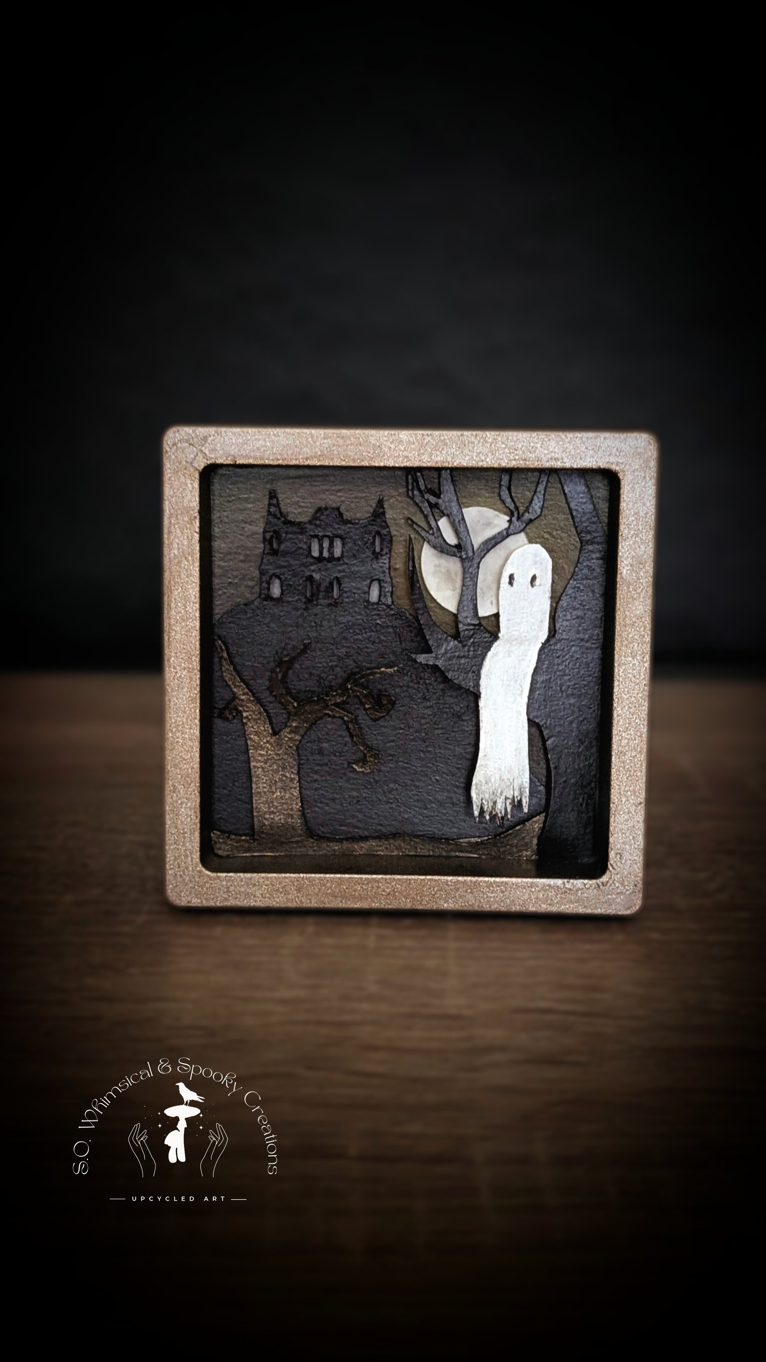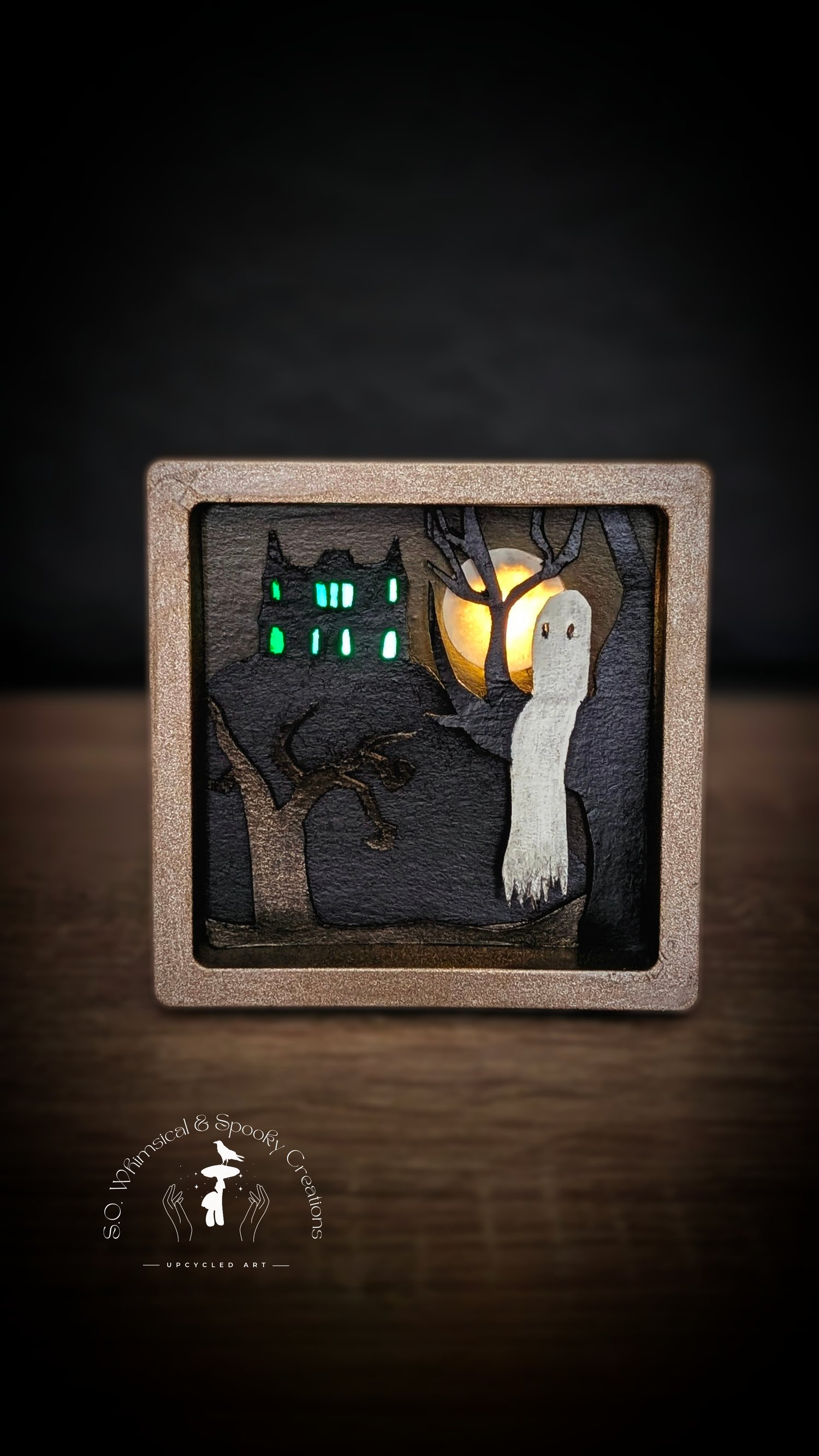 This one of kind, upcycled shadow box is a perfect addition to any ghostly home!